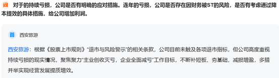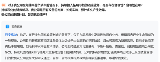 与这些旅游资源相比,西安三家旅游企业显然先天条件并不差,流量和热度也不差,经营业绩却连续多年亏损,引发了投资者的灵魂拷问。例如有投资者质疑西安旅游持续投入亏损的酒店业务的合理性: