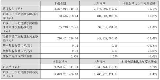 挖贝网8月28日,大亚圣象(000910)近日发布2024年半年度报告,报告期内公司实现营业收入2,377,014,110.18元,同比下滑11.14%;归属于上市公司股东的净利润63,545,488.64元,同比下滑37.64%。