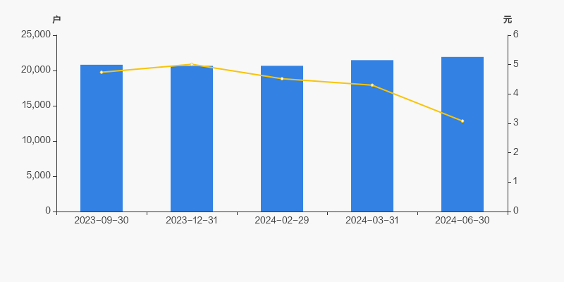 自2023年12月31日以来,公司股东户数连续3期上涨,截至目前增幅为6.11%。2023年12月31日至2024年6月30日区间股价下降38.52%。