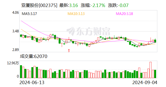 亚厦股份2024年9月4日在深交所互动易中披露,截至2024年8月30日公司股东户数为3.23万户,较上期(2024年8月20日)减少348户,减幅为1.07%。