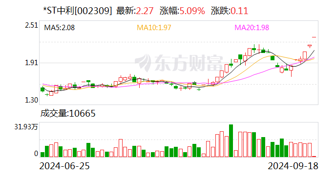 *ST中利(维权)再度涨停,5个交易日内录得4个涨停,累计涨幅为22.04%,累计换手率为5.94%。截至9:25,该股今日成交量80.13万股,成交金额181.90万元,换手率0.09%。最新A股总市值达19.79亿元,A股流通市值19.70亿元。
