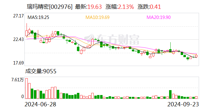 2024年9月23日,瑞玛精密发生了3笔大宗交易,总成交42.4万股,成交金额792.12万元,成交均价18.68元。当日收盘报价19.63元,涨幅2.13%,成交金额1768.39万元;大宗交易成交金额占当日成交金额44.79%,折价4.83%。
