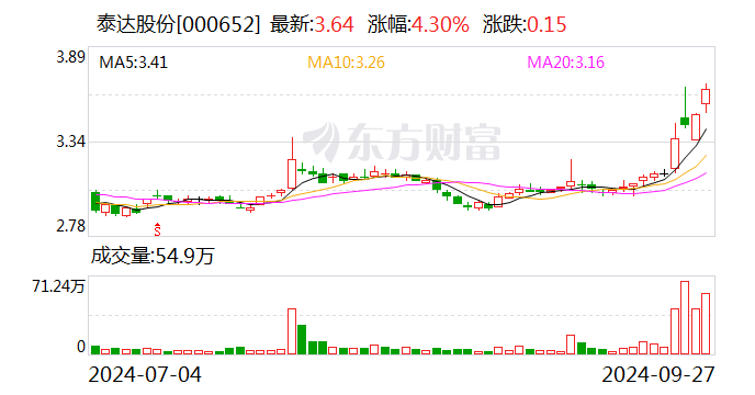 2024年9月20日,深股通持有泰达股份的股份数量为535.4万股,占流通股本的0.36%,较上期(2024年9月10日)的535.4万股不变。