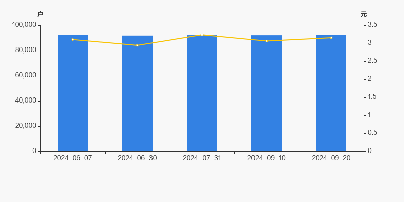截至2024年9月20日,公司最新总股本为14.76亿股,其中流通股本为14.74亿股。户均持有流通股数量为1.6万股,较上期略有下降;户均流通市值5.04万元。