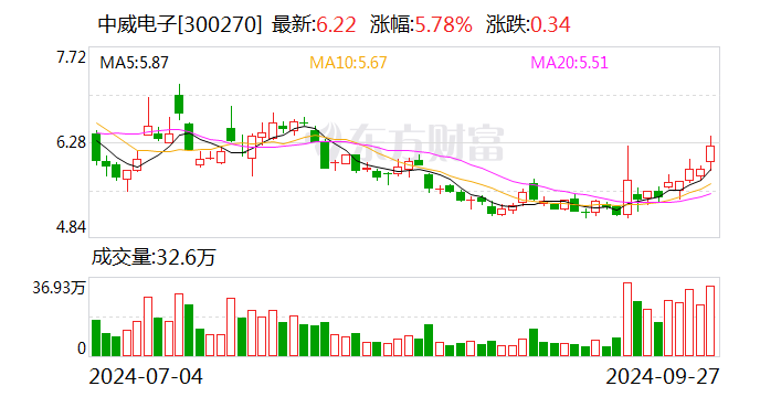 2024年9月27日,中威电子发生了3笔大宗交易,总成交100万股,成交金额540万元,成交均价5.40元,均为机构账户买入。当日收盘报价6.22元,涨幅5.78%,成交金额1.98亿元;大宗交易成交金额占当日成交金额2.73%,折价13.18%。