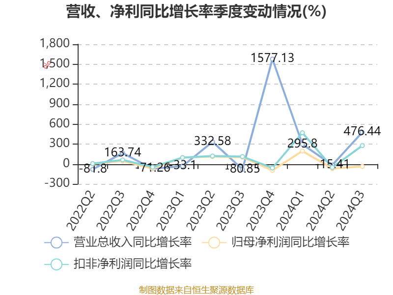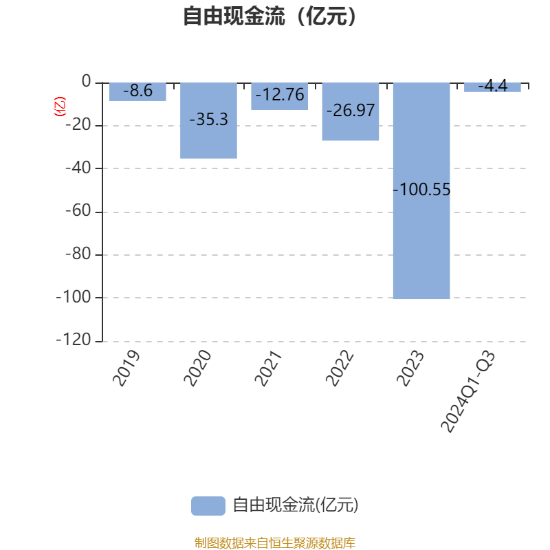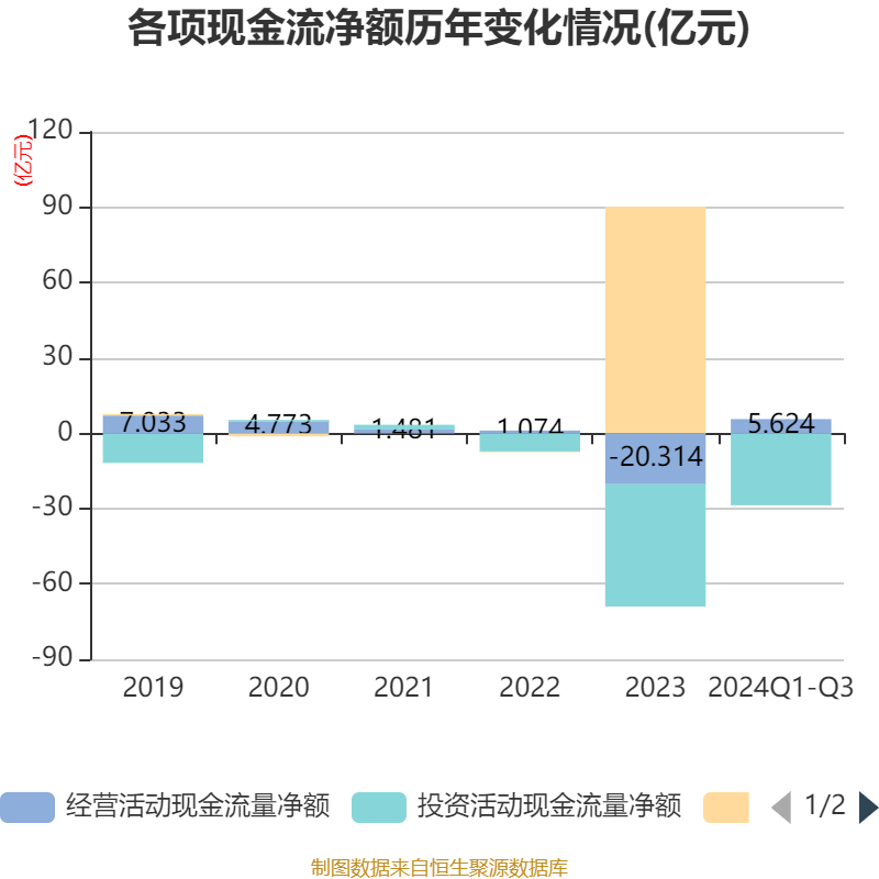 2024年前三季度,公司经营活动现金流净额为5.62亿元,同比增加21.31亿元;筹资活动现金流净额-463.17万元,同比减少89.72亿元;投资活动现金流净额-28.7亿元,上年同期为-45.39亿元。