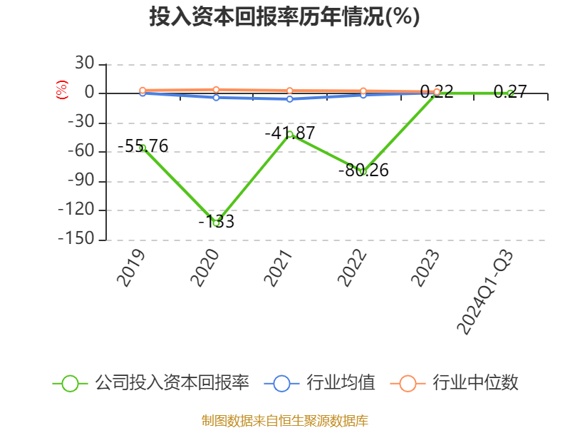 盈利能力方面, 2024年前三季度公司加权平均净资产收益率为0.32%,同比下降0.14个百分点。公司2024年前三季度投入资本回报率为0.27%,较上年同期上升0.04个百分点。