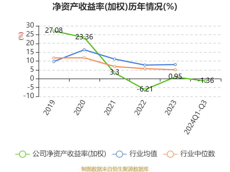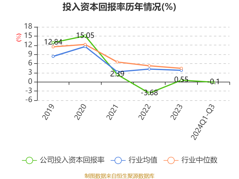 盈利能力方面, 2024年前三季度公司加权平均净资产收益率为-1.36%,同比下降4.47个百分点。公司2024年前三季度投入资本回报率为-0.1%,较上年同期下降2.06个百分点。