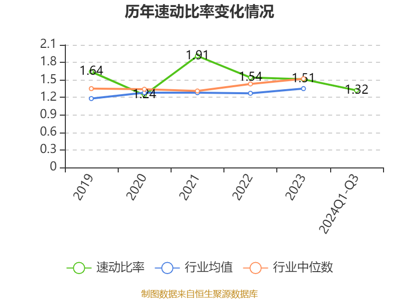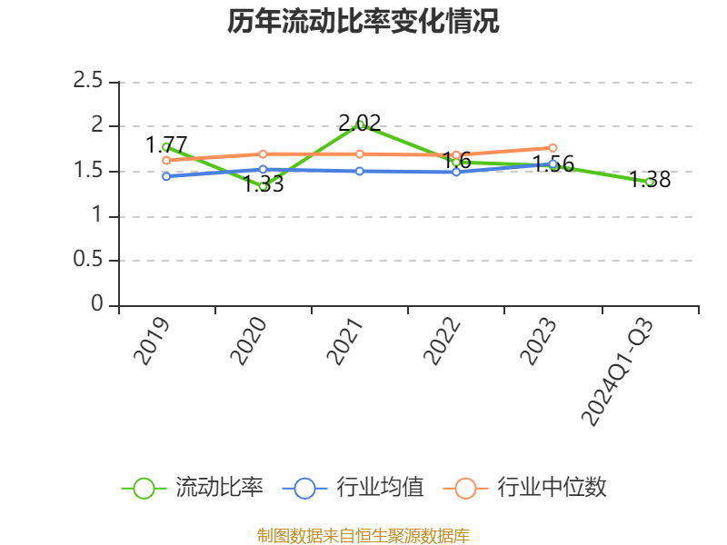 2024年前三季度,公司流动比率为1.38,速动比率为1.32。