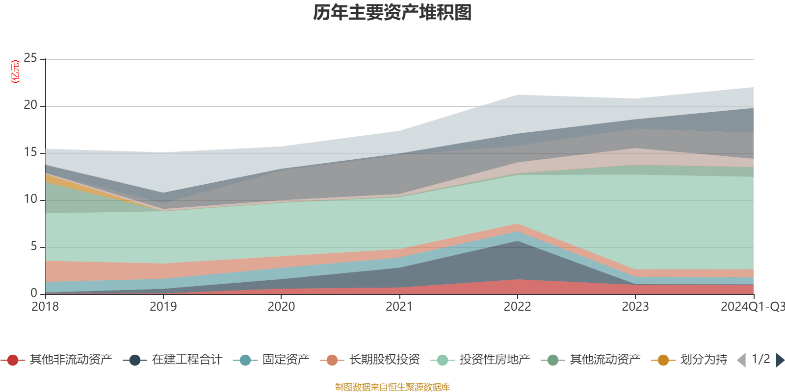 资产重大变化方面,截至2024年三季度末,公司应收票据及应收账款较上年末增加164.35%,占公司总资产比重上升6.35个百分点;存货较上年末减少50.18%,占公司总资产比重下降3.88个百分点;投资性房地产较上年末减少2.43%,占公司总资产比重下降2.76个百分点;交易性金融资产合计较上年末增加33.98%,占公司总资产比重上升2.43个百分点。