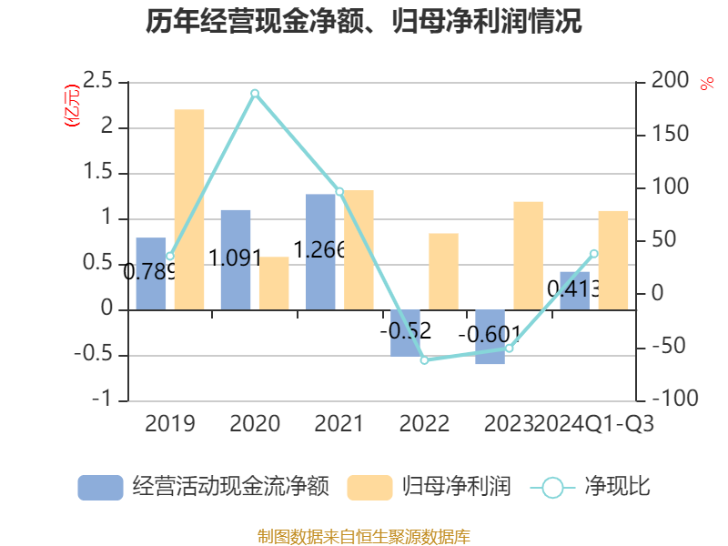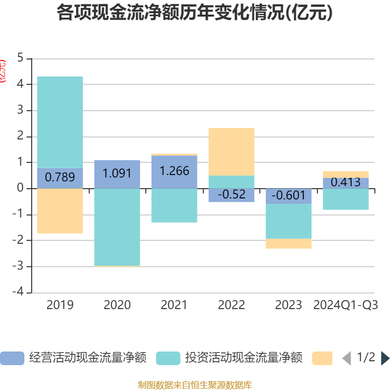 2024年前三季度,公司经营活动现金流净额为4128.75万元,同比增加1.14亿元;筹资活动现金流净额2554.88万元,同比减少542.82万元;投资活动现金流净额-8190.35万元,上年同期为-1.98亿元。