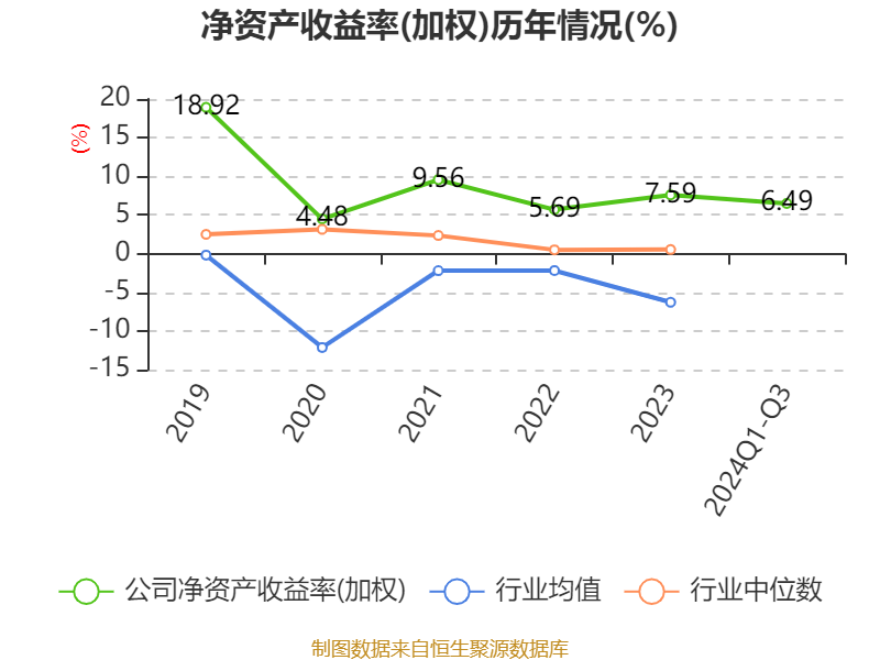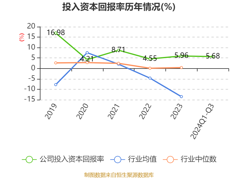 盈利能力方面, 2024年前三季度公司加权平均净资产收益率为6.49%,同比上升1.7个百分点。公司2024年前三季度投入资本回报率为5.68%,较上年同期上升1.62个百分点。