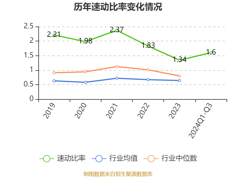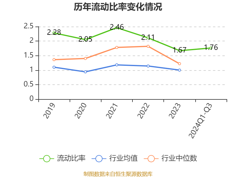 2024年前三季度,公司流动比率为1.76,速动比率为1.6。