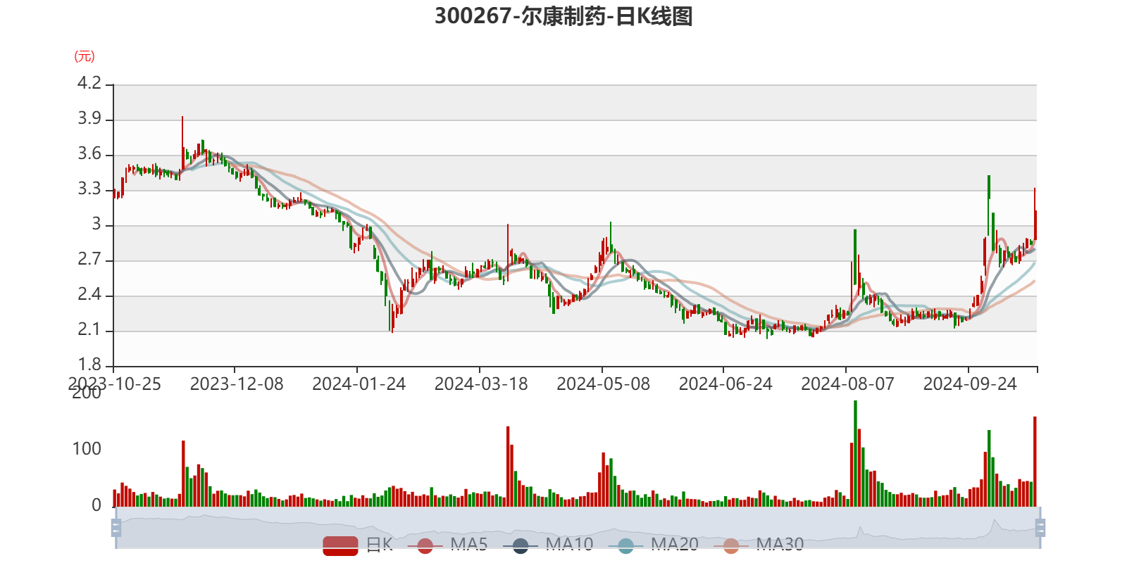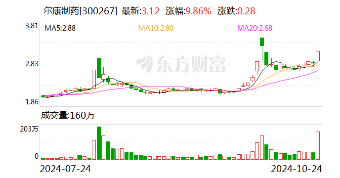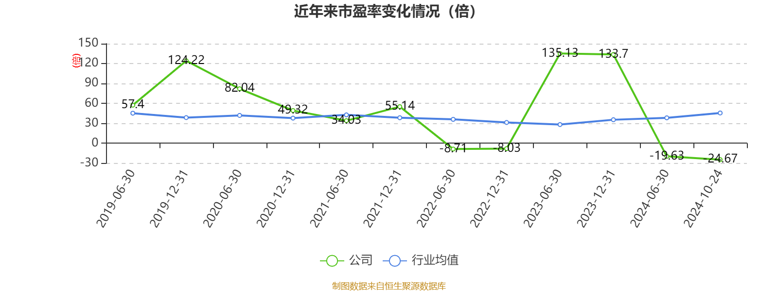 以10月24日收盘价计算,尔康制药目前市盈率(TTM)约为-24.67倍,市净率(LF)约1.36倍,市销率(TTM)约5.4倍。