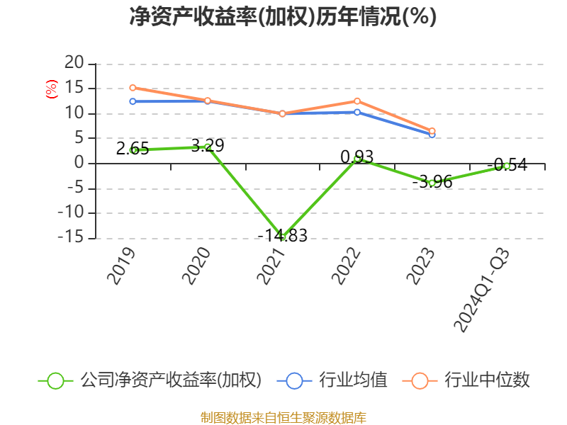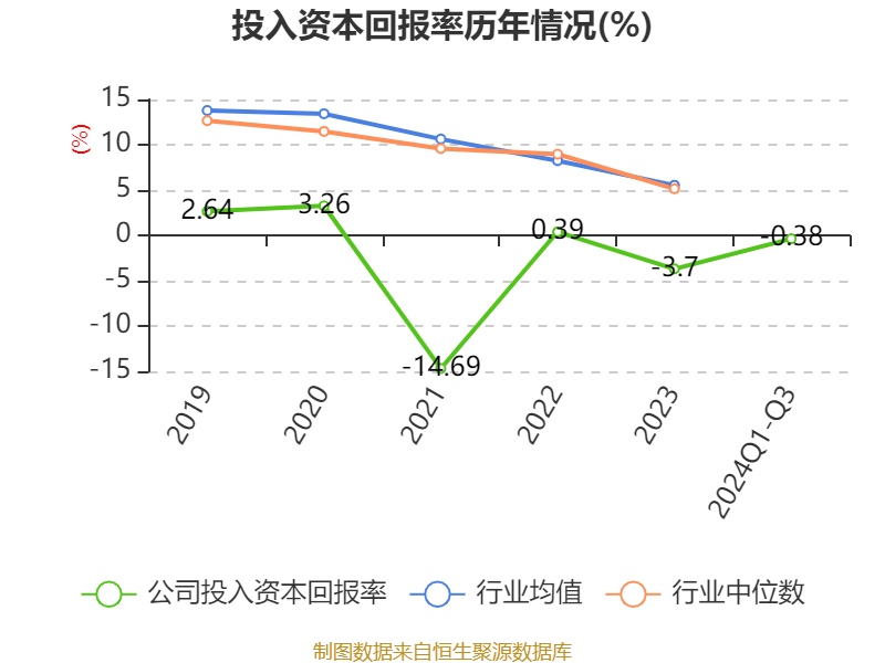 盈利能力方面, 2024年前三季度公司加权平均净资产收益率为-0.54%,同比下降1.32个百分点。公司2024年前三季度投入资本回报率为-0.38%,较上年同期下降0.85个百分点。