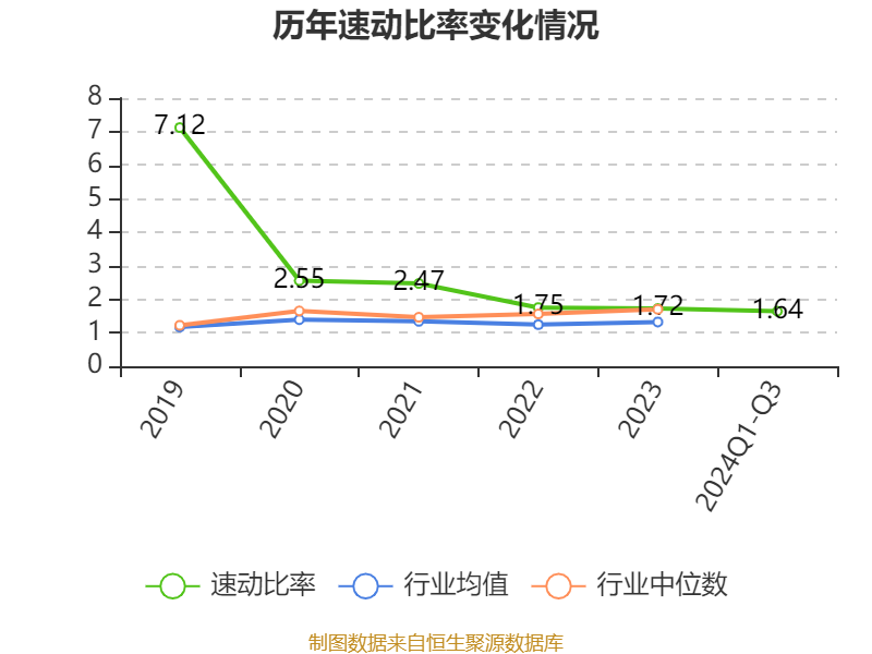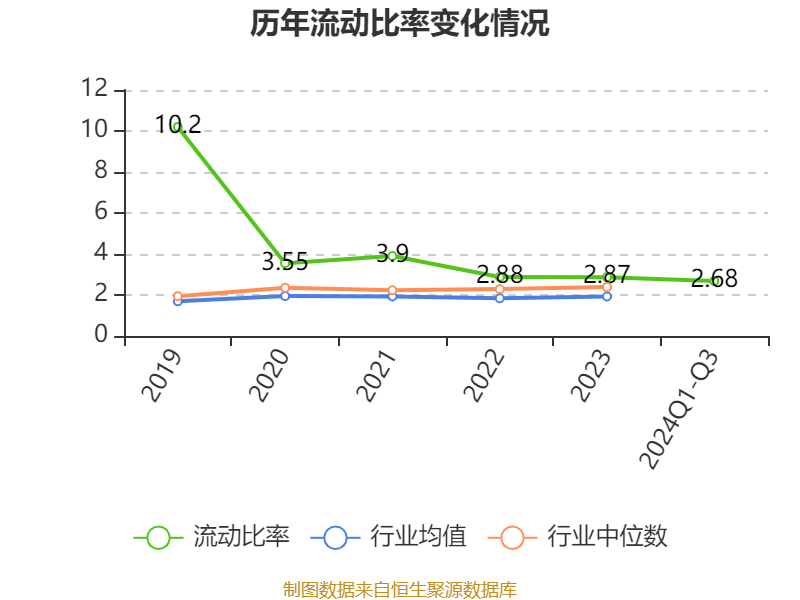 2024年前三季度,公司流动比率为2.68,速动比率为1.64。