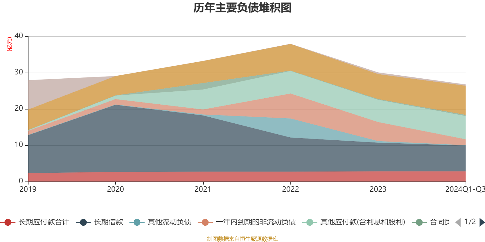 负债重大变化方面,截至2024年三季度末,公司一年内到期的非流动负债较上年末减少68.97%,占公司总资产比重下降8.11个百分点;应付票据及应付账款较上年末增加16.66%,占公司总资产比重上升4.79个百分点;其他应付款(含利息和股利)较上年末增加4.41%,占公司总资产比重上升2.31个百分点;其他流动负债较上年末减少79.2%,占公司总资产比重下降0.8个百分点。