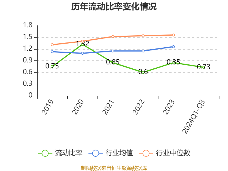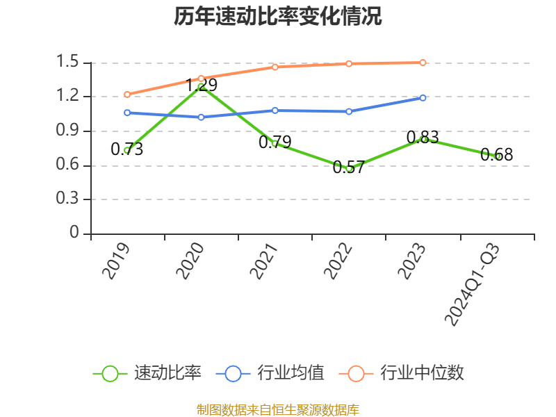 2024年前三季度,公司流动比率为0.73,速动比率为0.68。