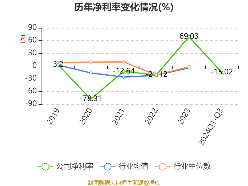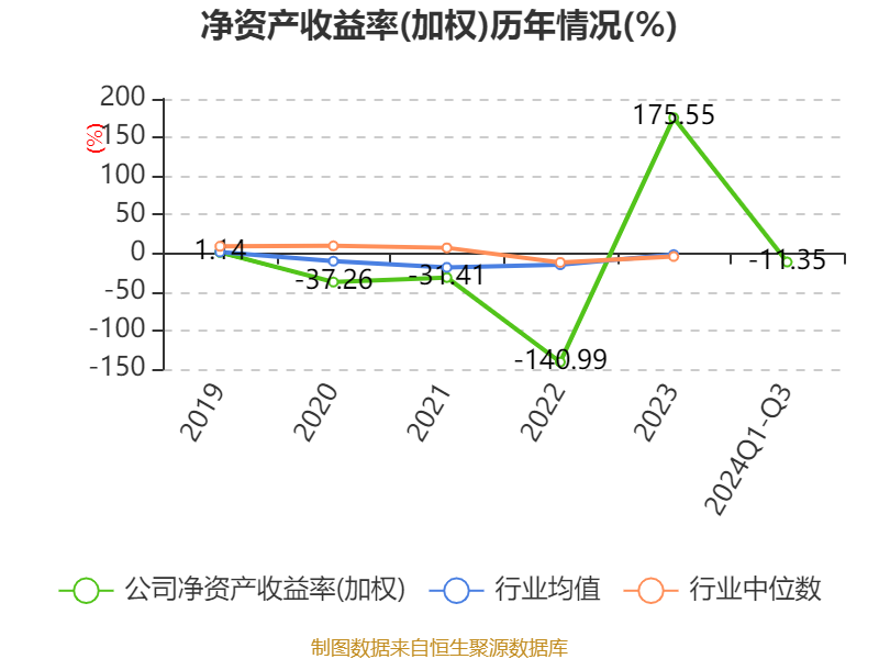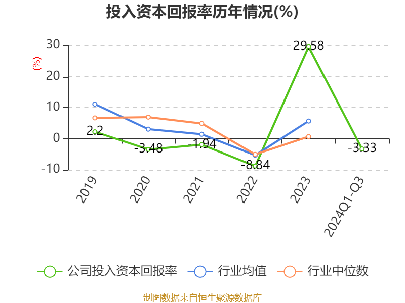 盈利能力方面, 2024年前三季度公司加权平均净资产收益率为-11.35%,同比下降172.86个百分点。公司2024年前三季度投入资本回报率为-3.33%,较上年同期下降21.57个百分点。