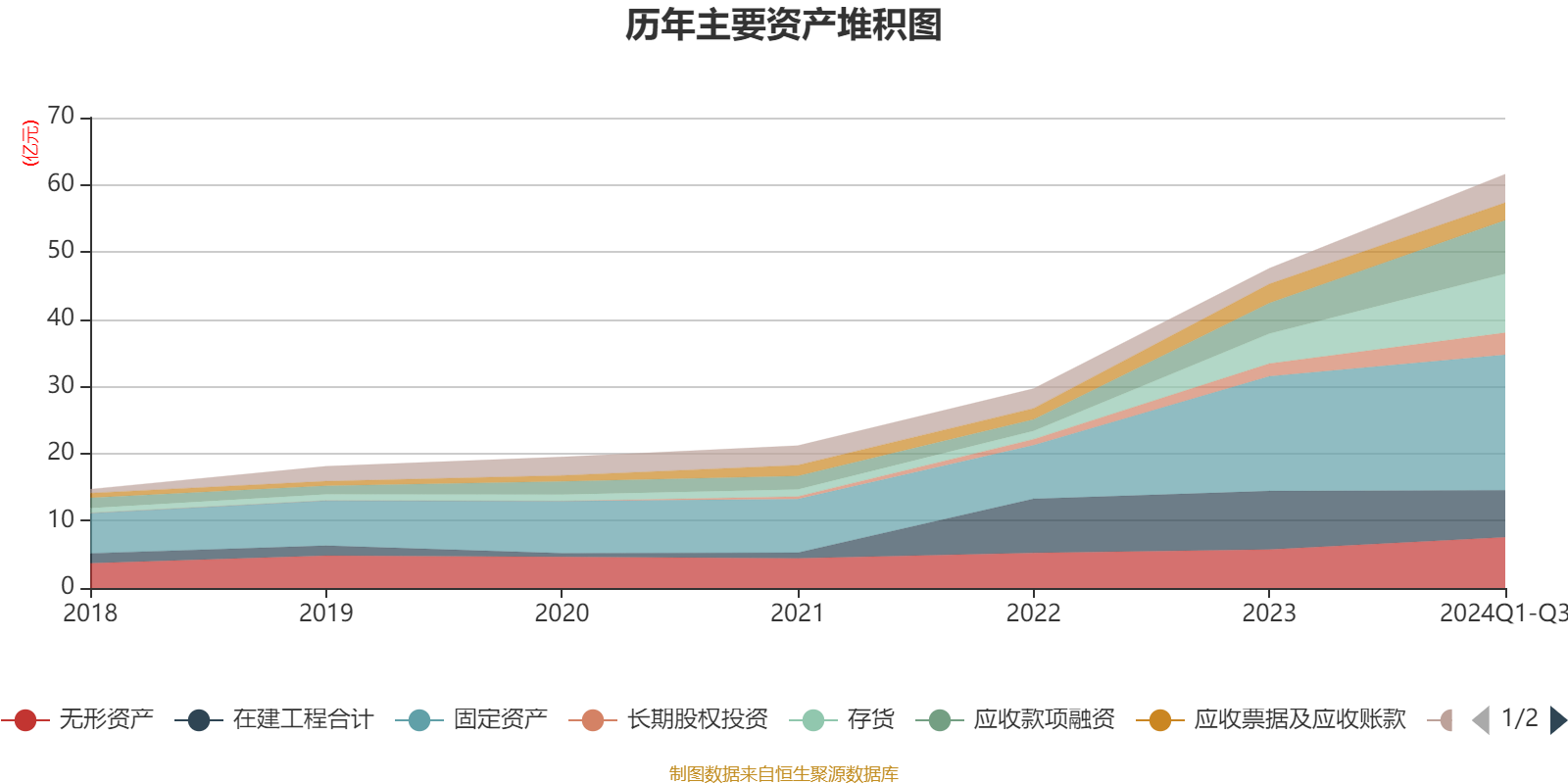 资产重大变化方面,截至2024年三季度末,公司在建工程合计较上年末减少19.57%,占公司总资产比重下降6.63个百分点;存货较上年末增加97.19%,占公司总资产比重上升4.54个百分点;固定资产较上年末增加18.08%,占公司总资产比重下降3.19个百分点;应收款项融资较上年末增加74.53%,占公司总资产比重上升3.1个百分点。