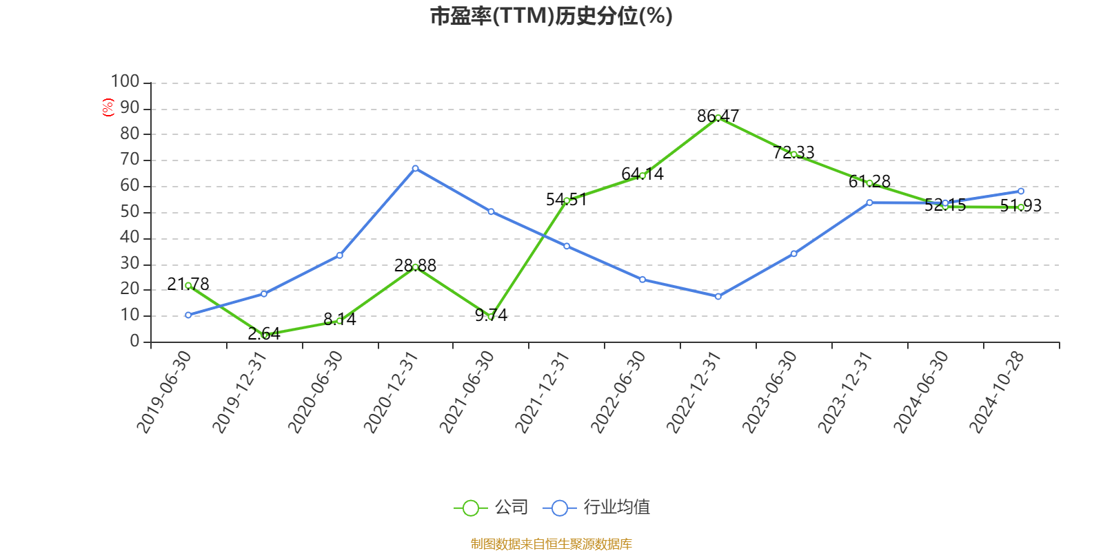 市盈率、市净率为负时,不显示当期分位数,会导致折线图中断。