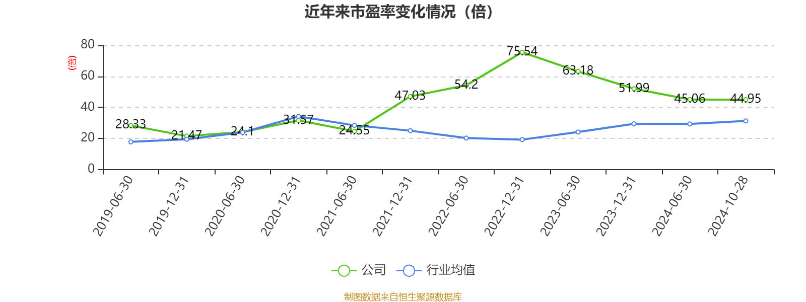 以10月28日收盘价计算,金石资源目前市盈率(TTM)约为44.95倍,市净率(LF)约9.59倍,市销率(TTM)约6.17倍。