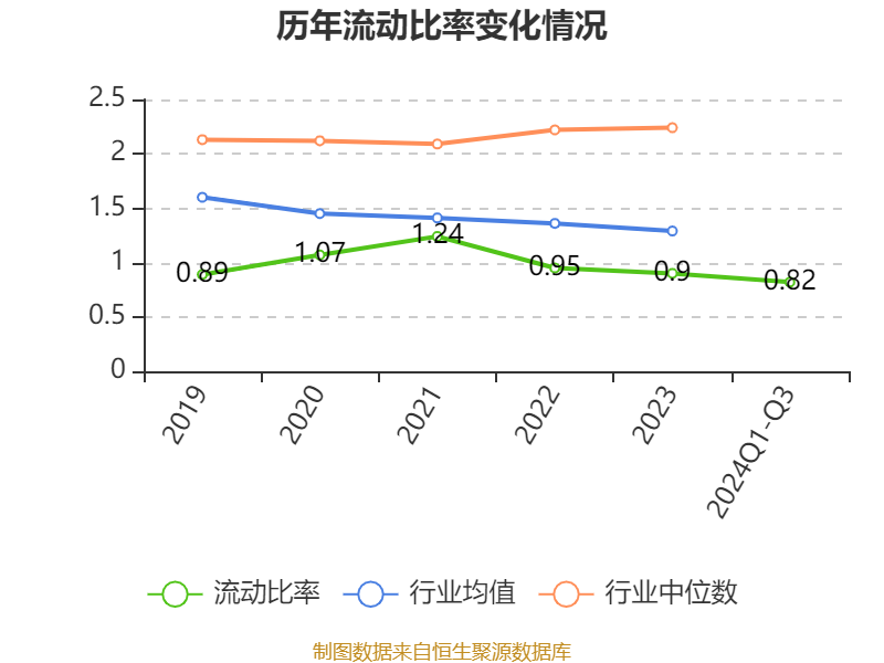 2024年前三季度,公司流动比率为0.82,速动比率为0.55。