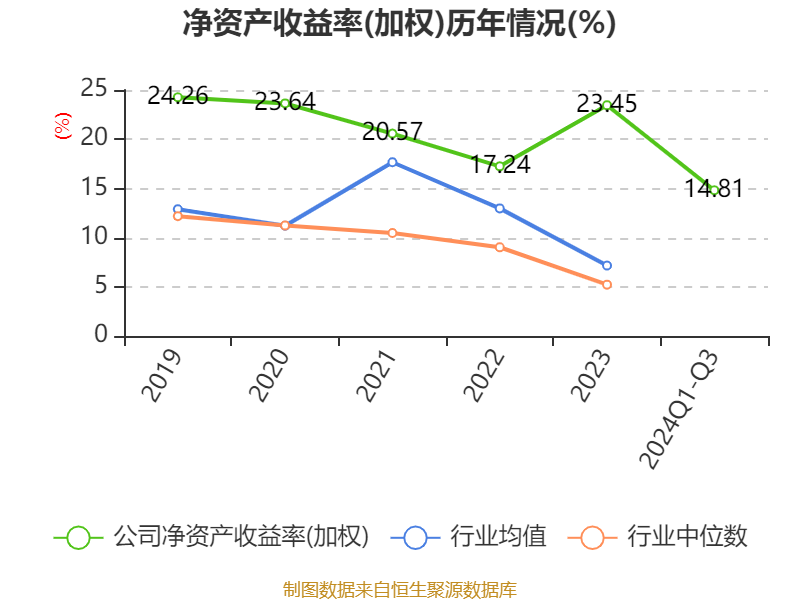 盈利能力方面, 2024年前三季度公司加权平均净资产收益率为14.81%,同比下降2.21个百分点。公司2024年前三季度投入资本回报率为7.03%,较上年同期下降2.14个百分点。