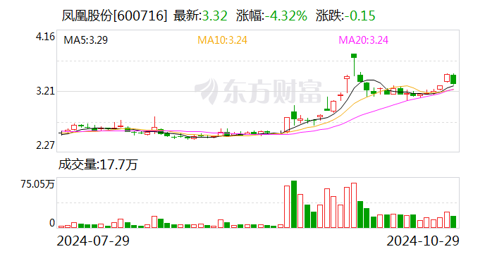 财中社10月29日电凤凰股份(600716)发布三季度报告,报告显示,2024年三季度公司营业收入为3930万元,同比下降4.06%;归属于上市公司股东的净利润为-1615万元,同比下降220.95%。基本每股收益为-0.0173元,稀释每股收益同样为-0.0173元。公司表示,净利润大幅下降主要是因为去年同期有较大投资收益,而本期没有此类收益。