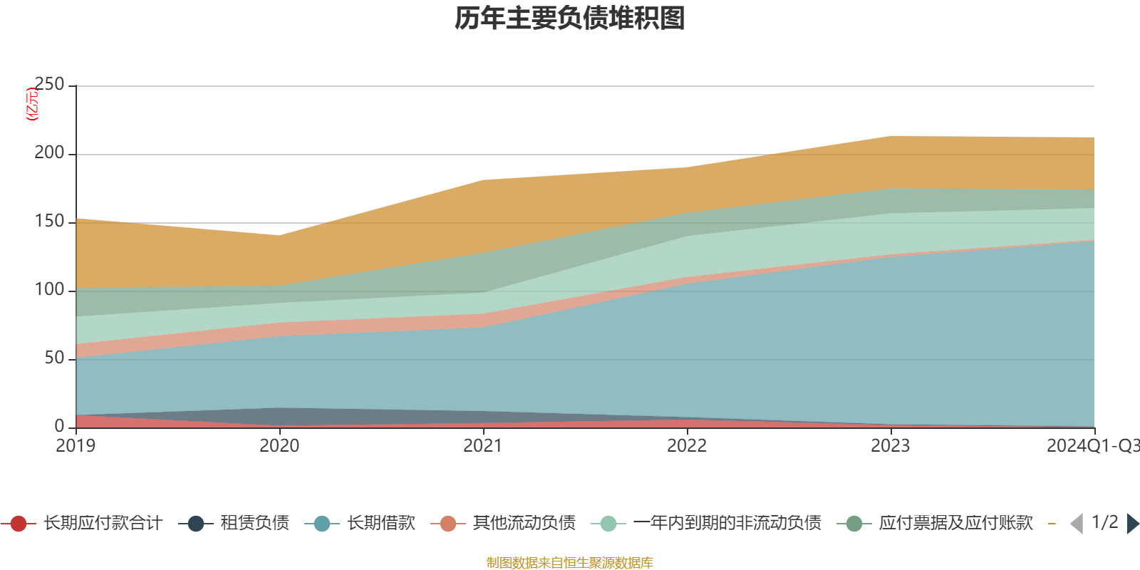 负债重大变化方面,截至2024年三季度末,公司长期借款较上年末增加10.55%,占公司总资产比重上升4.27个百分点;一年内到期的非流动负债较上年末减少23.02%,占公司总资产比重下降3.06个百分点;应付债券占公司总资产的2.04%,上年末为0;应付票据及应付账款较上年末减少25.05%,占公司总资产比重下降2个百分点。