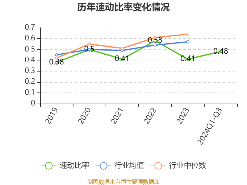 2024年前三季度,公司流动比率为0.52,速动比率为0.48。