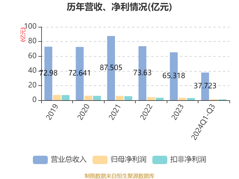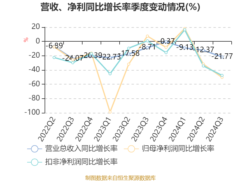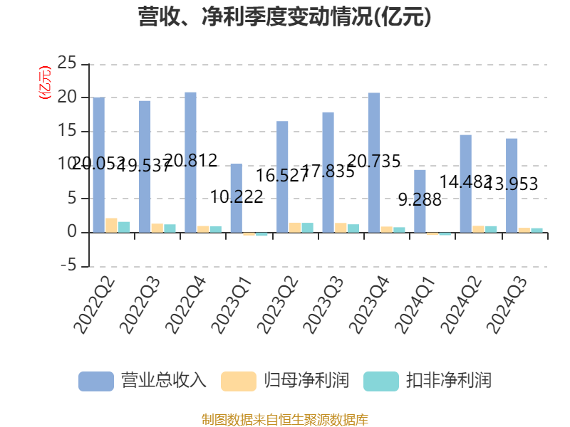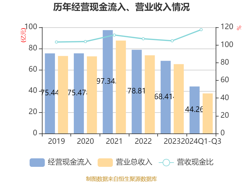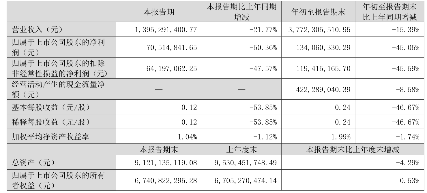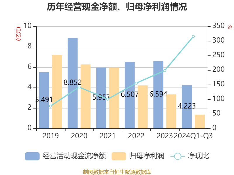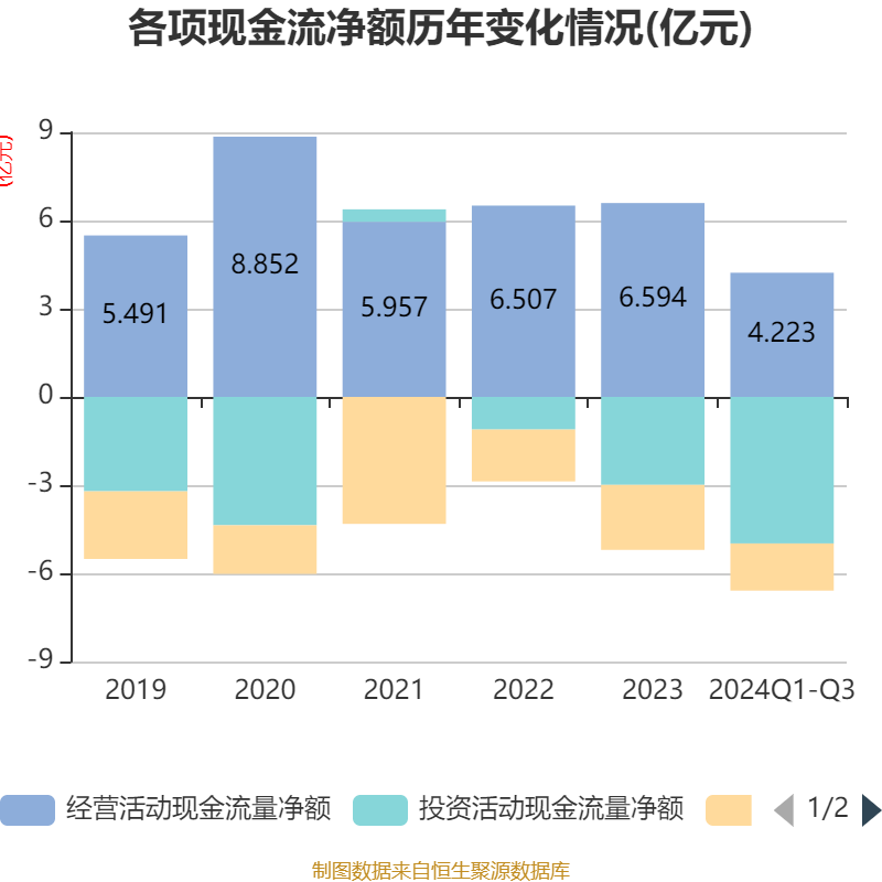 2024年前三季度,公司经营活动现金流净额为4.22亿元,同比下降8.58%;筹资活动现金流净额-1.6亿元,同比增加5802.76万元;投资活动现金流净额-4.98亿元,上年同期为-2.98亿元。