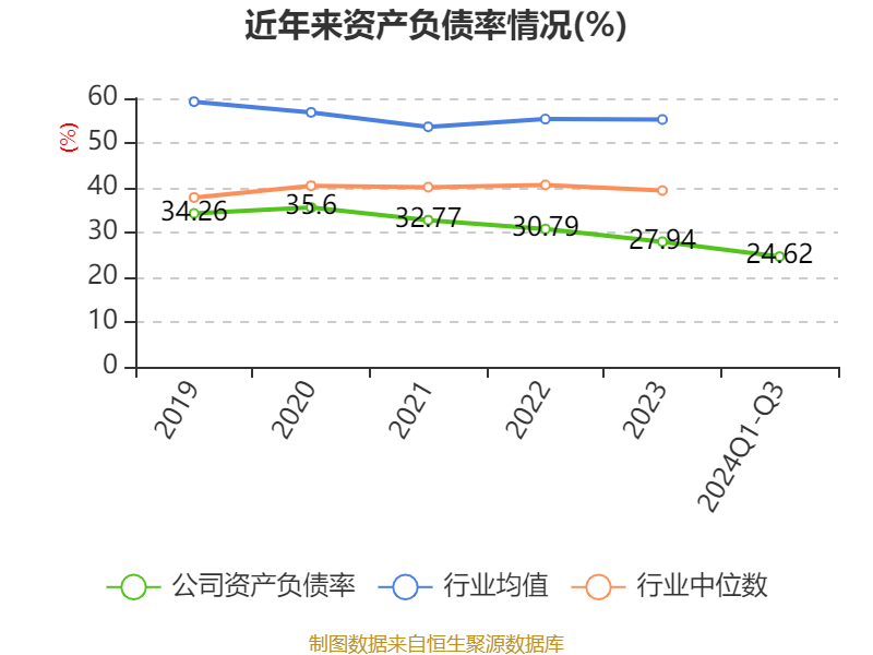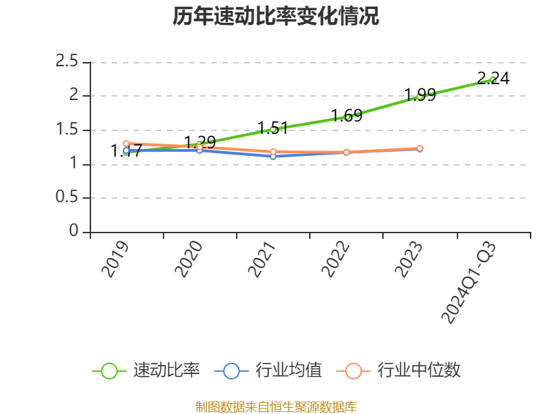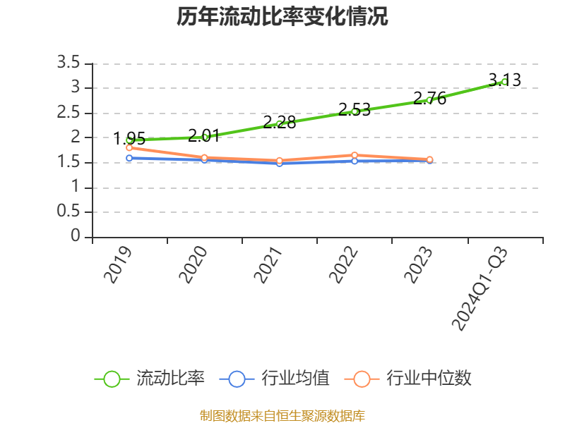 2024年前三季度,公司流动比率为3.13,速动比率为2.24。