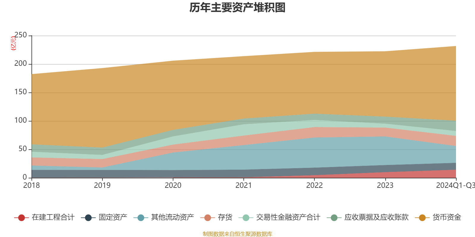 资产重大变化方面,截至2024年三季度末,公司其他流动资产较上年末减少41.07%,占公司总资产比重下降8.65个百分点;货币资金较上年末增加14.39%,占公司总资产比重上升4.18个百分点;应收票据及应收账款较上年末增加45.9%,占公司总资产比重上升1.92个百分点;在建工程合计较上年末增加43.66%,占公司总资产比重上升1.43个百分点。