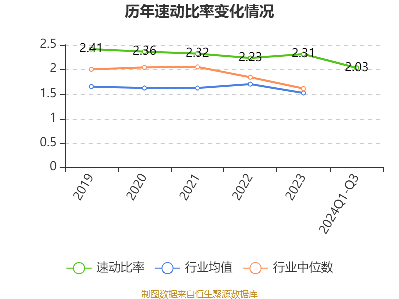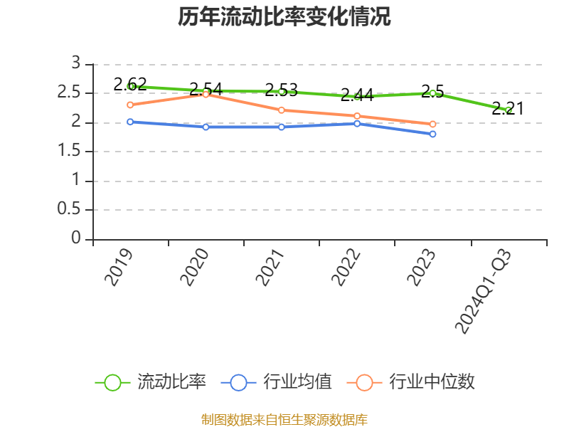 2024年前三季度,公司流动比率为2.21,速动比率为2.03。