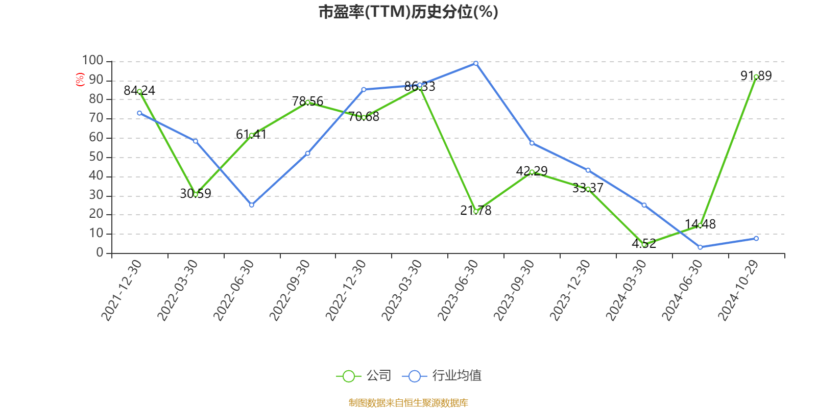 市盈率、市净率为负时,不显示当期分位数,会导致折线图中断。