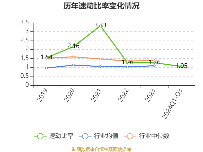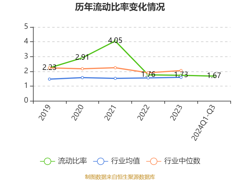 2024年前三季度,公司流动比率为1.67,速动比率为1.05。