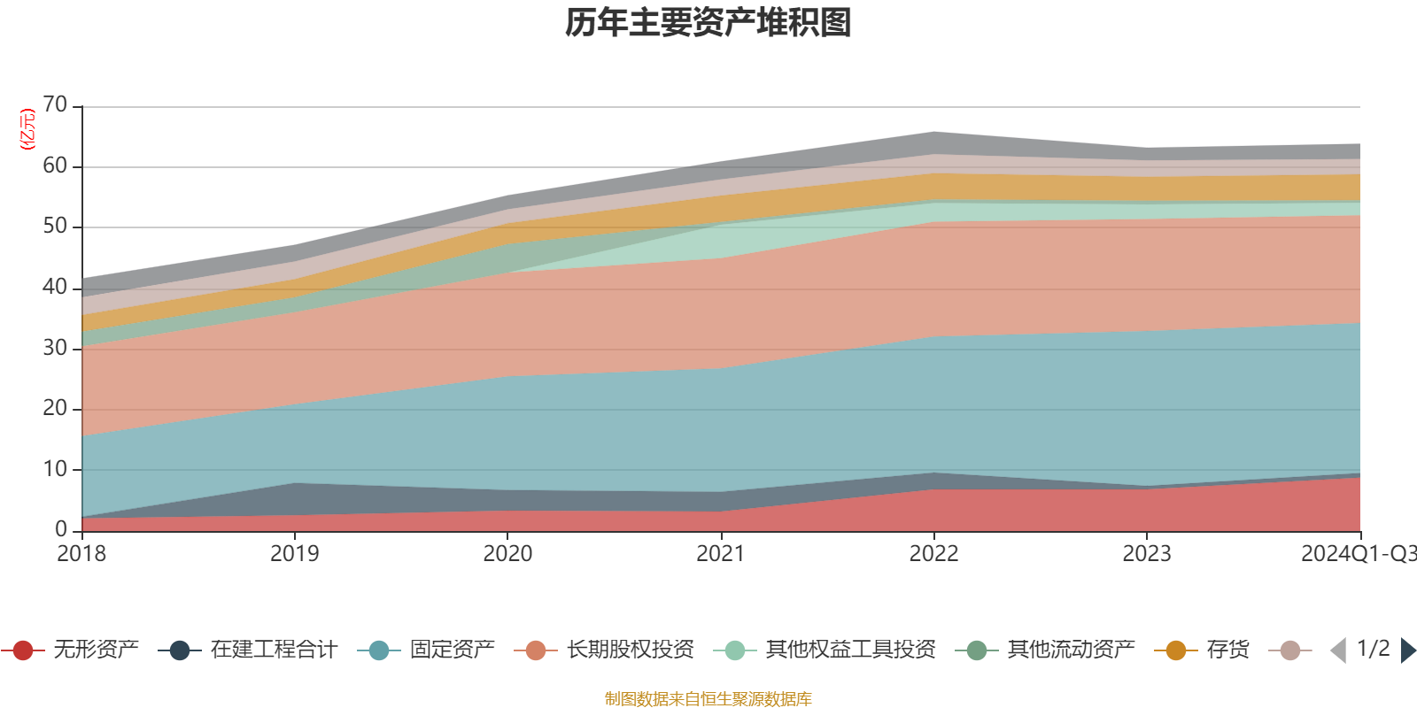资产重大变化方面,截至2024年三季度末,公司无形资产较上年末增加27.82%,占公司总资产比重上升2.64个百分点;固定资产较上年末减少3.21%,占公司总资产比重下降1.36个百分点;长期股权投资较上年末减少3.86%,占公司总资产比重下降1.15个百分点;预付款项较上年末增加142.72%,占公司总资产比重上升0.67个百分点。