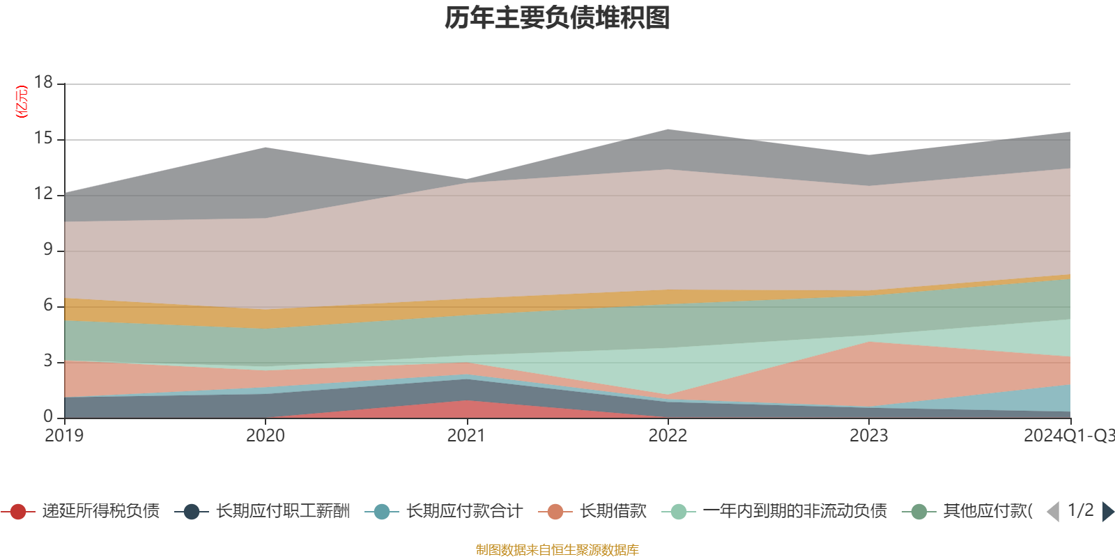 负债重大变化方面,截至2024年三季度末,公司长期借款较上年末减少57.14%,占公司总资产比重下降2.85个百分点;一年内到期的非流动负债较上年末增加487.28%,占公司总资产比重上升2.35个百分点;长期应付款合计较上年末增加2026.89%,占公司总资产比重上升1.98个百分点;应付职工薪酬较上年末减少74.9%,占公司总资产比重下降0.58个百分点。