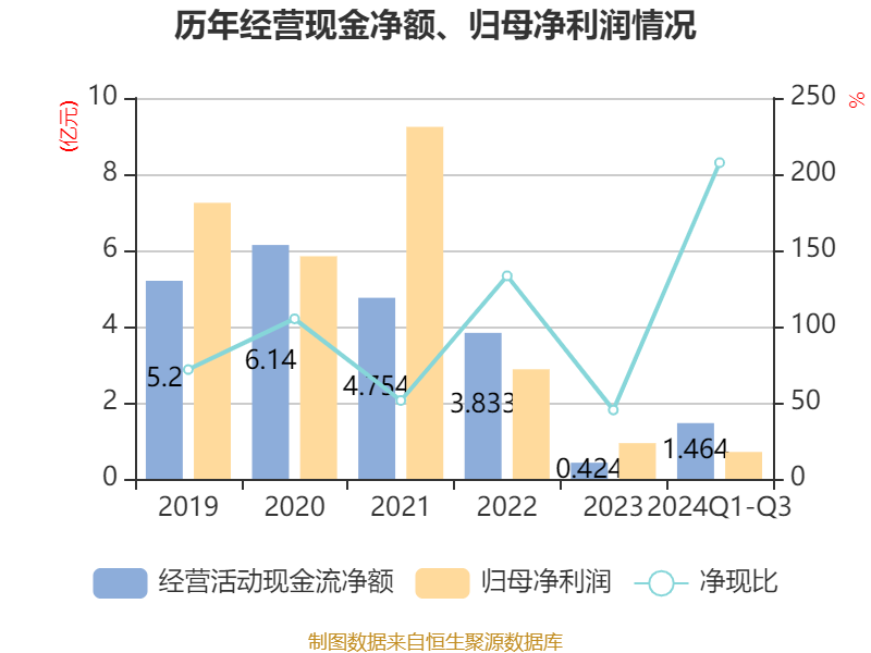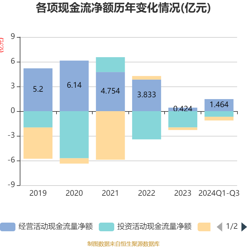 2024年前三季度,公司经营活动现金流净额为1.46亿元,同比增长163.05%;筹资活动现金流净额-4518.94万元,同比减少3394.82万元;投资活动现金流净额-6802.48万元,上年同期为-1.68亿元。