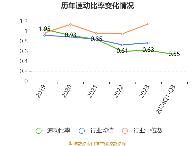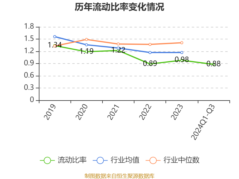 2024年前三季度,公司流动比率为0.88,速动比率为0.55。