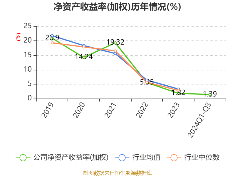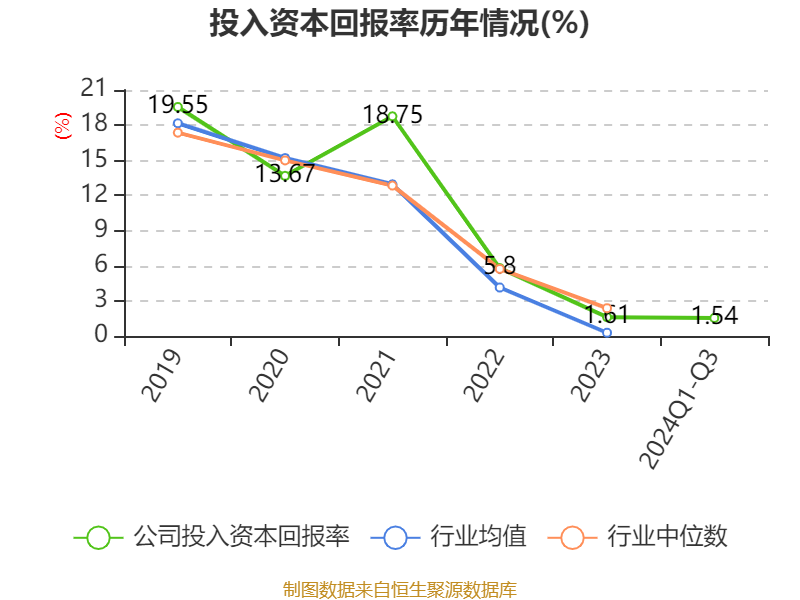 盈利能力方面, 2024年前三季度公司加权平均净资产收益率为1.39%,同比下降1.07个百分点。公司2024年前三季度投入资本回报率为1.54%,较上年同期下降0.7个百分点。