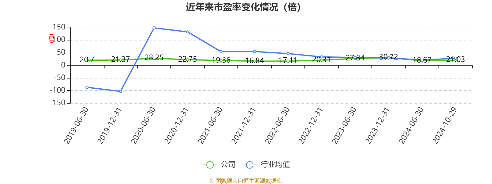 以10月29日收盘价计算,朗迪集团目前市盈率(TTM)约为21.03倍,市净率(LF)约2.61倍,市销率(TTM)约1.84倍。