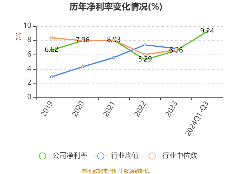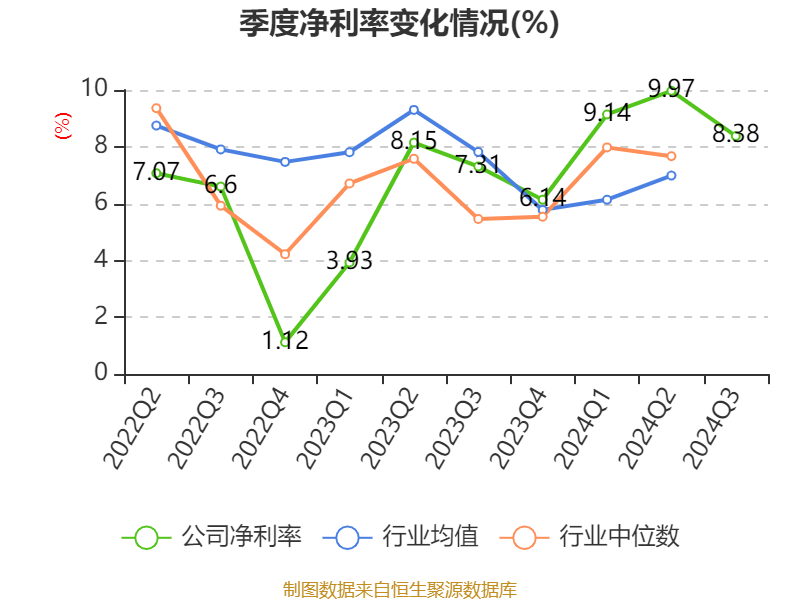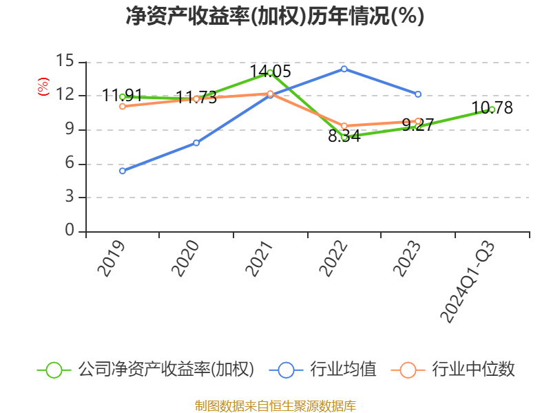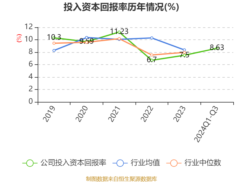 盈利能力方面, 2024年前三季度公司加权平均净资产收益率为10.78%,同比上升3.38个百分点。公司2024年前三季度投入资本回报率为8.63%,较上年同期上升2.72个百分点。