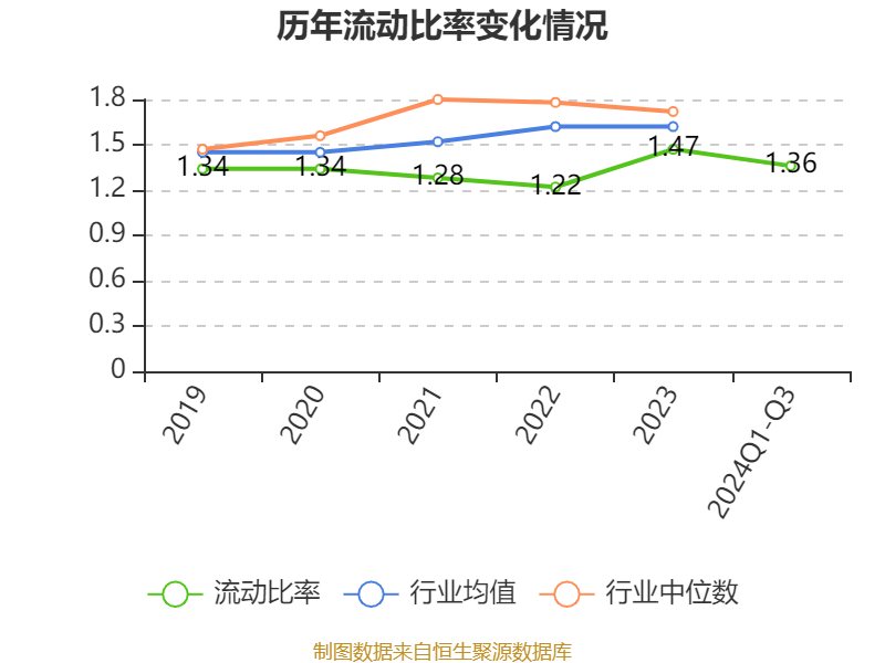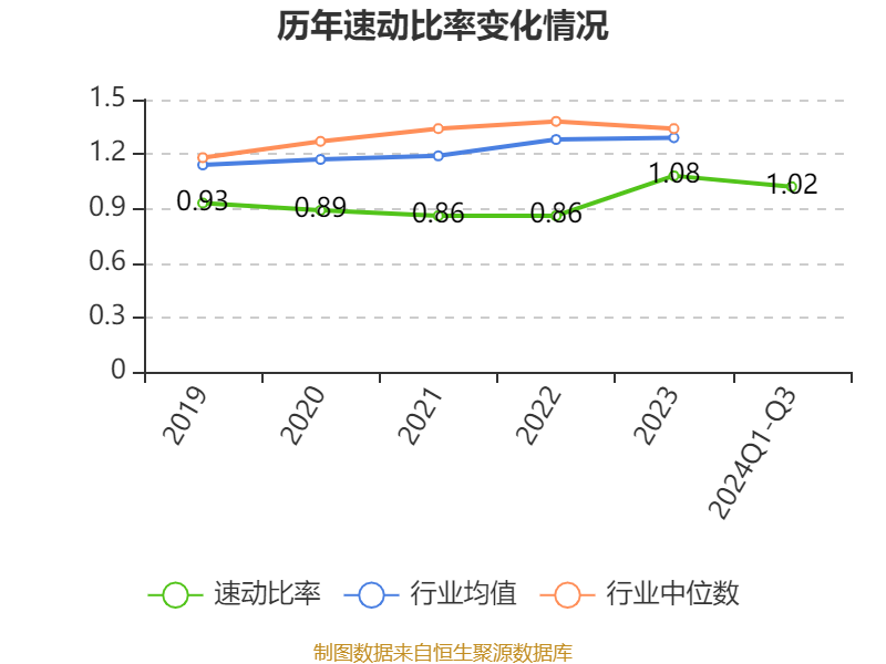 2024年前三季度,公司流动比率为1.36,速动比率为1.02。