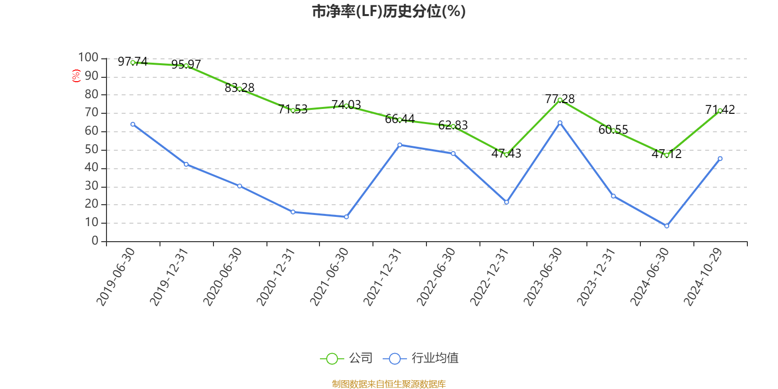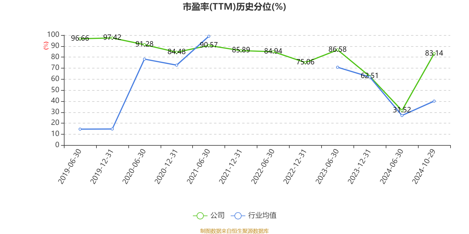 市盈率、市净率为负时,不显示当期分位数,会导致折线图中断。