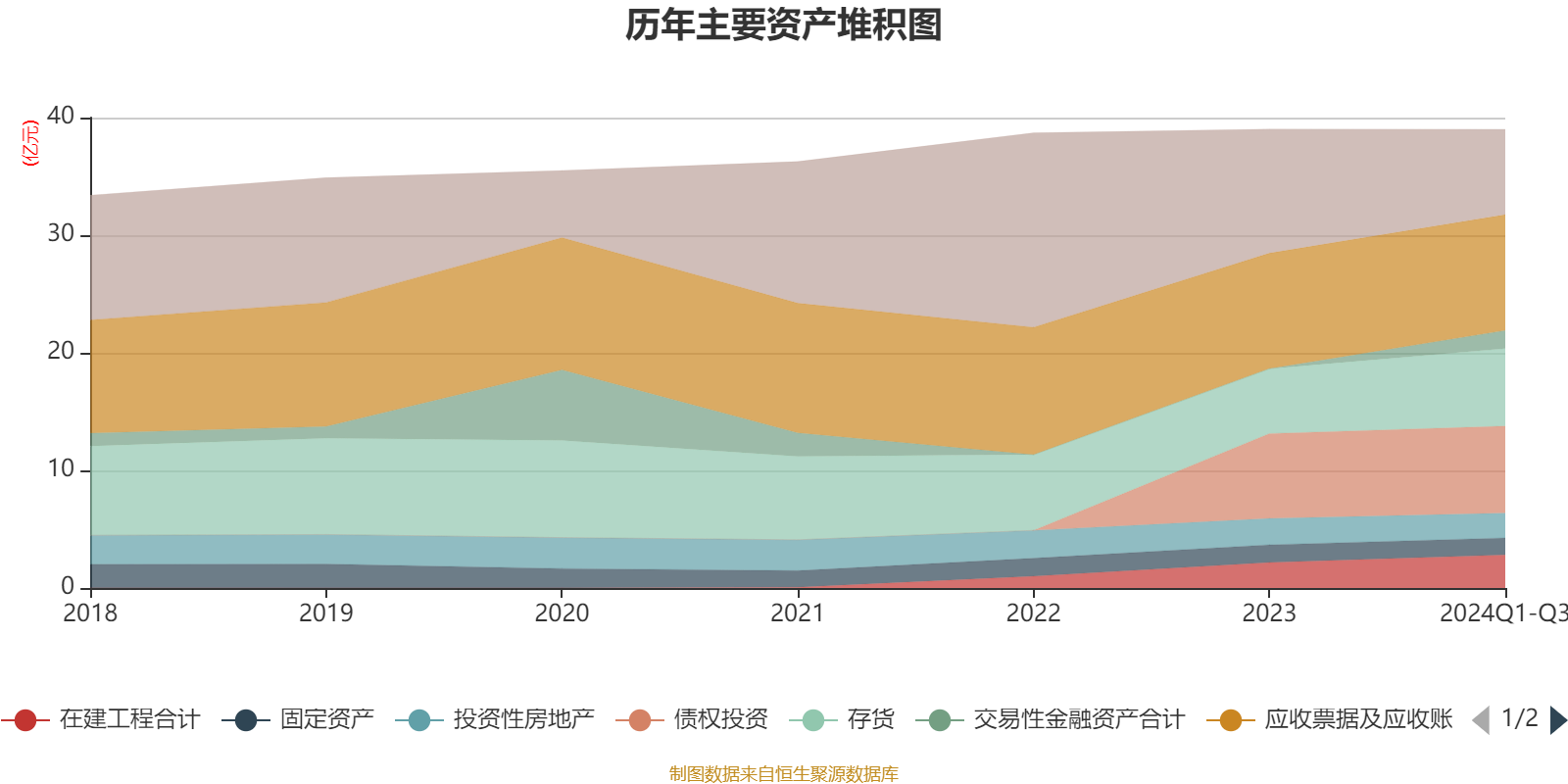资产重大变化方面,截至2024年三季度末,公司货币资金较上年末减少31.14%,占公司总资产比重下降7.57个百分点;交易性金融资产合计占公司总资产的3.56%,上年末为0;存货较上年末增加19.37%,占公司总资产比重上升2.43个百分点;在建工程合计较上年末增加29.89%,占公司总资产比重上升1.48个百分点。