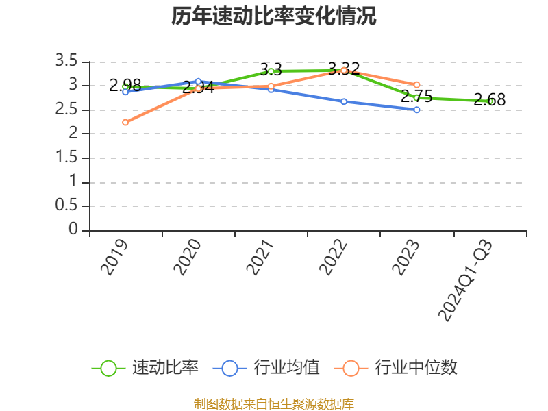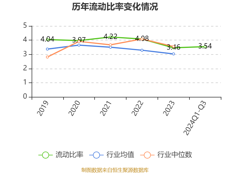 2024年前三季度,公司流动比率为3.54,速动比率为2.68。