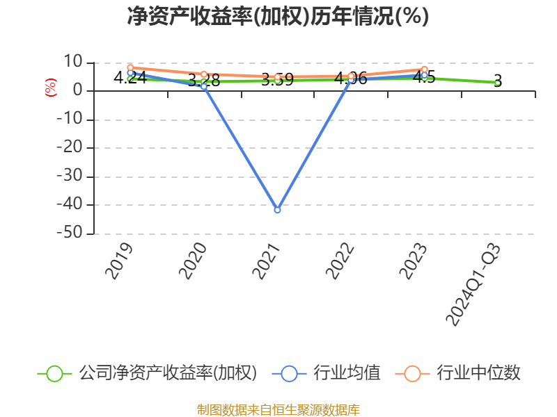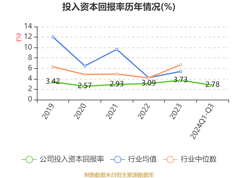 盈利能力方面, 2024年前三季度公司加权平均净资产收益率为3%,同比下降0.38个百分点。公司2024年前三季度投入资本回报率为2.78%,较上年同期上升0.31个百分点。