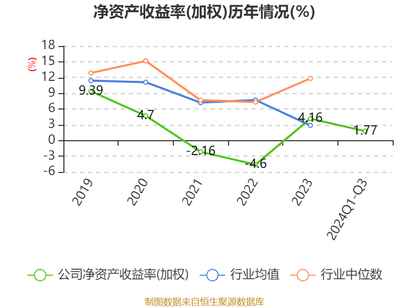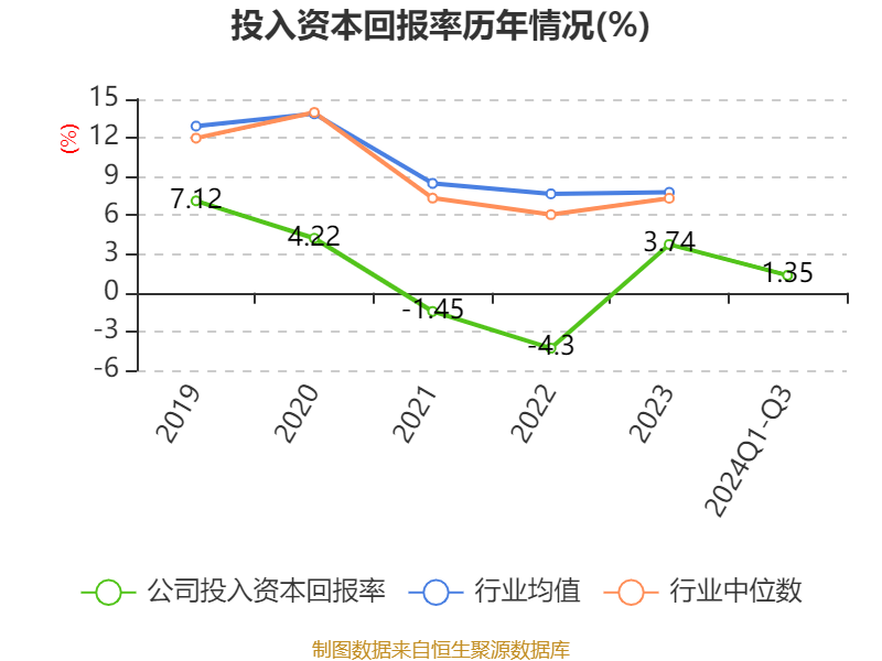 盈利能力方面, 2024年前三季度公司加权平均净资产收益率为1.77%,同比下降0.03个百分点。公司2024年前三季度投入资本回报率为1.35%,较上年同期上升0.27个百分点。